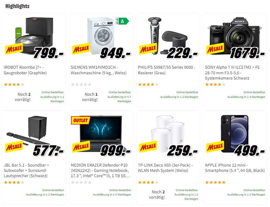 In dieser Aktion profitiert ihr von vielen tollen Angeboten auf Produkte im Bereich Beauty, Computer & Büro, Home Entertainment und vieles mehr. Von iPhones über Gaming-Laptops bis hin zu Saugrobotern gibt es sich für jeden etwas, bei dem sich das Zuschlagen lohnt.