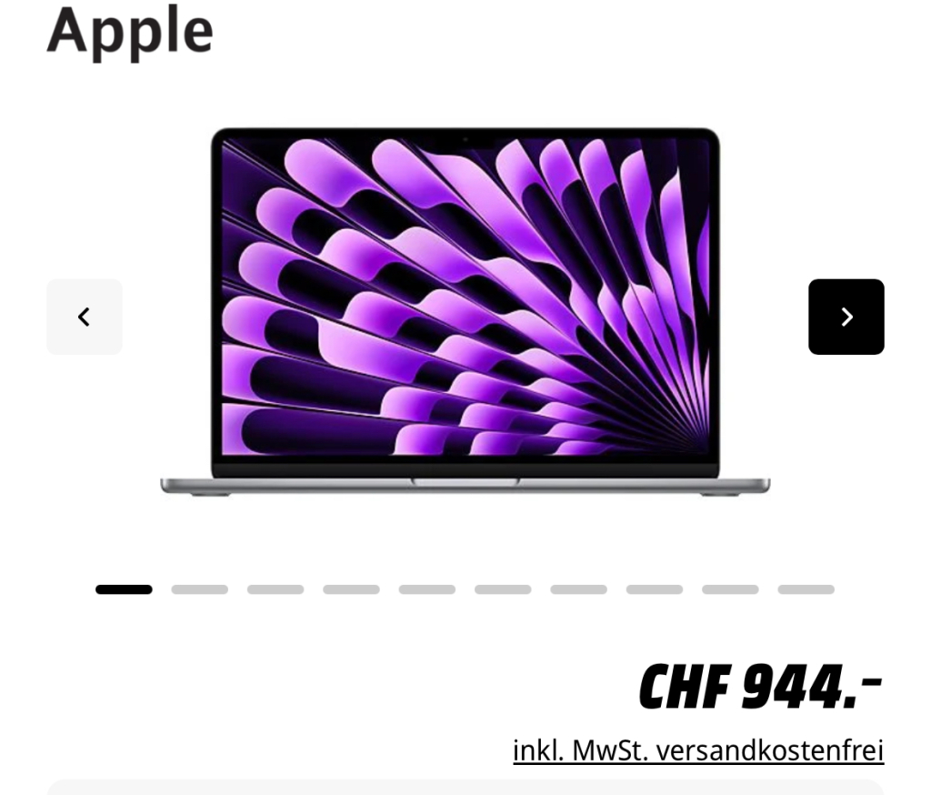 Das Macbook Air 13“ M3 mit 16GB zum Tiefstpreis von 944.- bei Mediamarkt. Wem 8GB reichen, bekommt dieses für 911.-