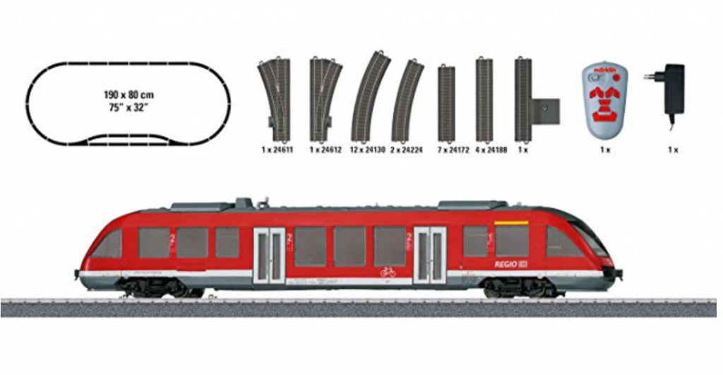 Bei Amazon gibt’s gerade das Modelleisenbahn-Set Märklin Start up (29641) für umgerechnet CHF 125.- inklusive Verzollung und Lieferung in die Schweiz. Es handelt sich dabei um einen Zug der Deutschen Bahn (DB). Vielleicht trotzdem für den einen oder anderen interessant.