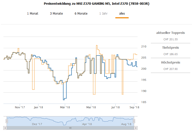 Im digitec Tagesdeal gibt es heute das MSI Z370 GAMING M5, Intel Z370 Mainboard für 159.- CHF. Gemäss toppreise gab es das Mainboard bislang nie günstiger als für 189.15 CHF, der zweitbeste Preis liegt aktuell bei 207.- CHF inkl. Versand.