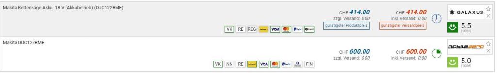 Bei Galaxus gibt es die MAKITA DUC122RME für den neuen Bestpreis von CHF 414.-. Der vorherige Bestpreis war CHF 522.-. Der zweitbeste Preis beträgt CHF 600.-.