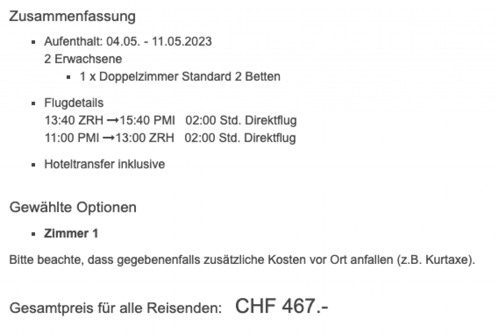 Man kann die Reise natürlich auch mit weniger Nächten, mehr Personen etc. buchen. Mit dem obigen Angebot kommt ihr einfach am günstigsten.
