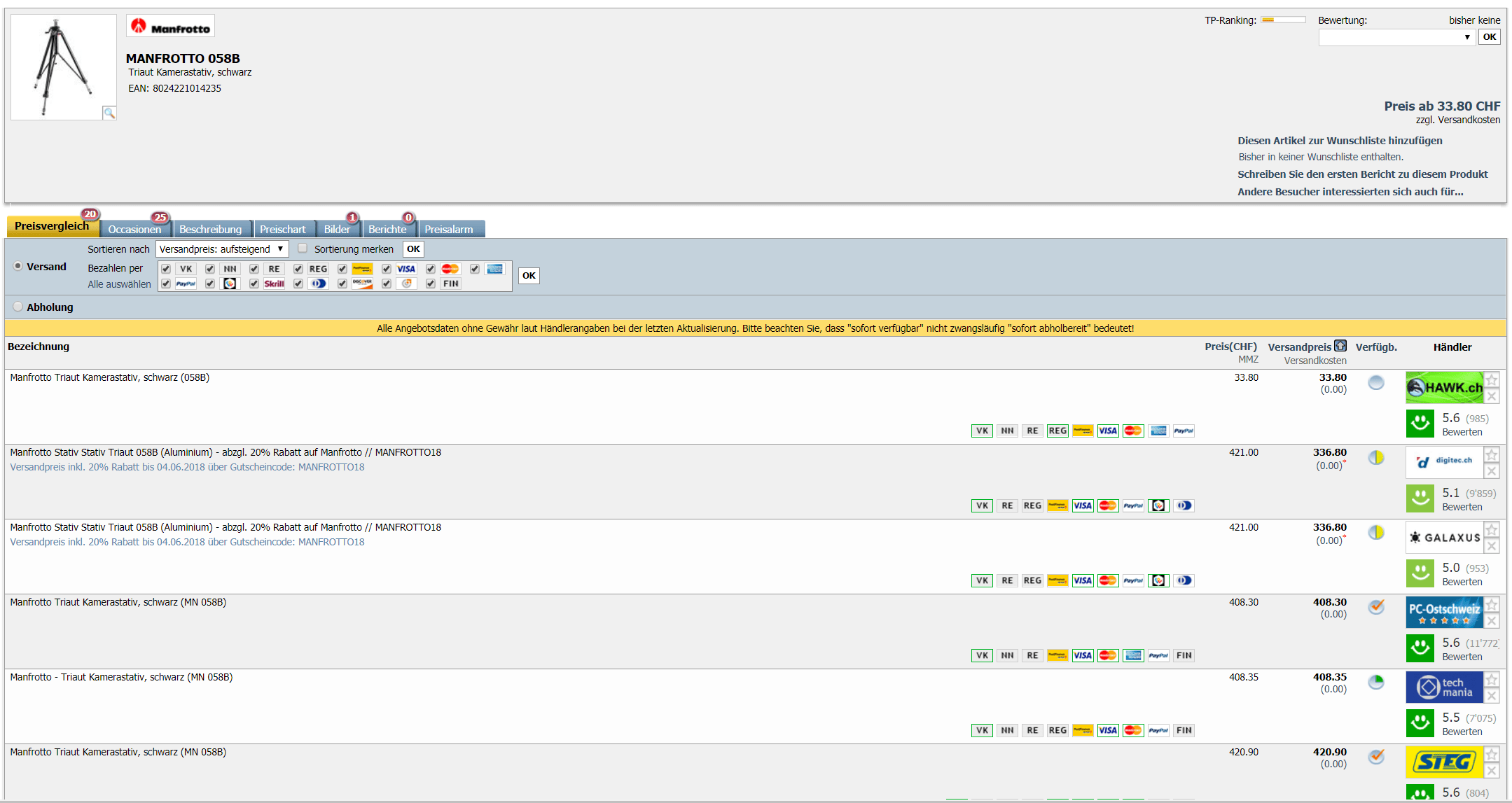 Manfrotto 058B Kamerastativ bei Hawk.ch Preisfehler ?