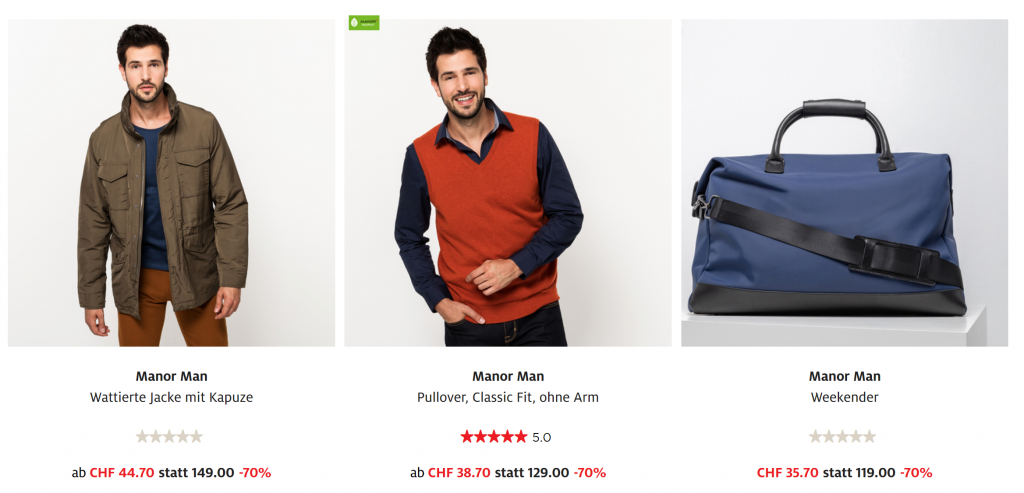 Manor öffnet ab Montag die Läden wieder. Da viele Artikel nun zu Beginn des Jahres nicht verkauft werden könnten, sind die Lager entsprechend hoch und die Preise tief. Auch im Onlineshop gibt’s derzeit über 400 neu reduzierte Artikel mit bis zu 70% Rabatt. Sind einige wirklich gute Preise darunter.