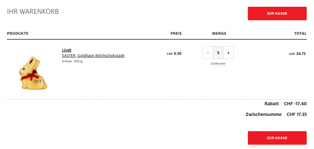 Spannend vor allem für die Lindt Goldhasen: Diese gibt’s sonst nur kurz nach Ostern mit 50% Rabatt. So kann man bereits jetzt zuschlagen und bequem nach Hause ordern.