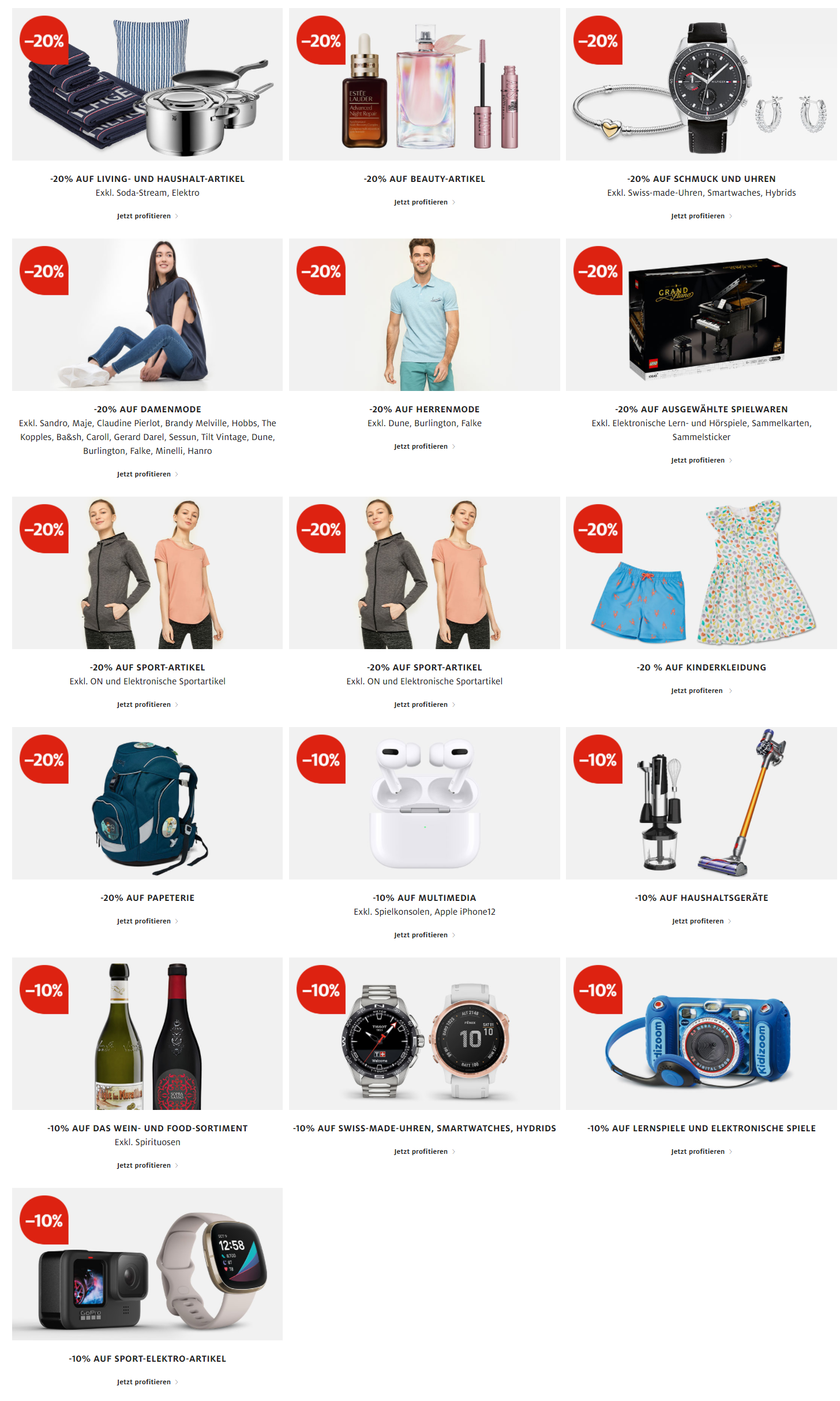 Hier eine kleine Übersicht, welche Kategorien im Sale sind: