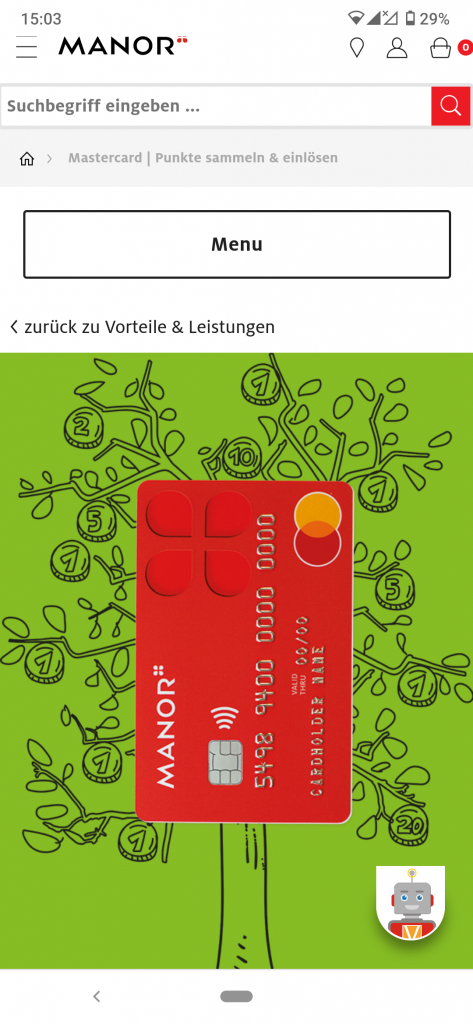 - 1 CHF = 1 Punkt: Wenn Sie Ihre Manor Mastercard nur als Treuekarte einsetzen ohne damit zu bezahlen