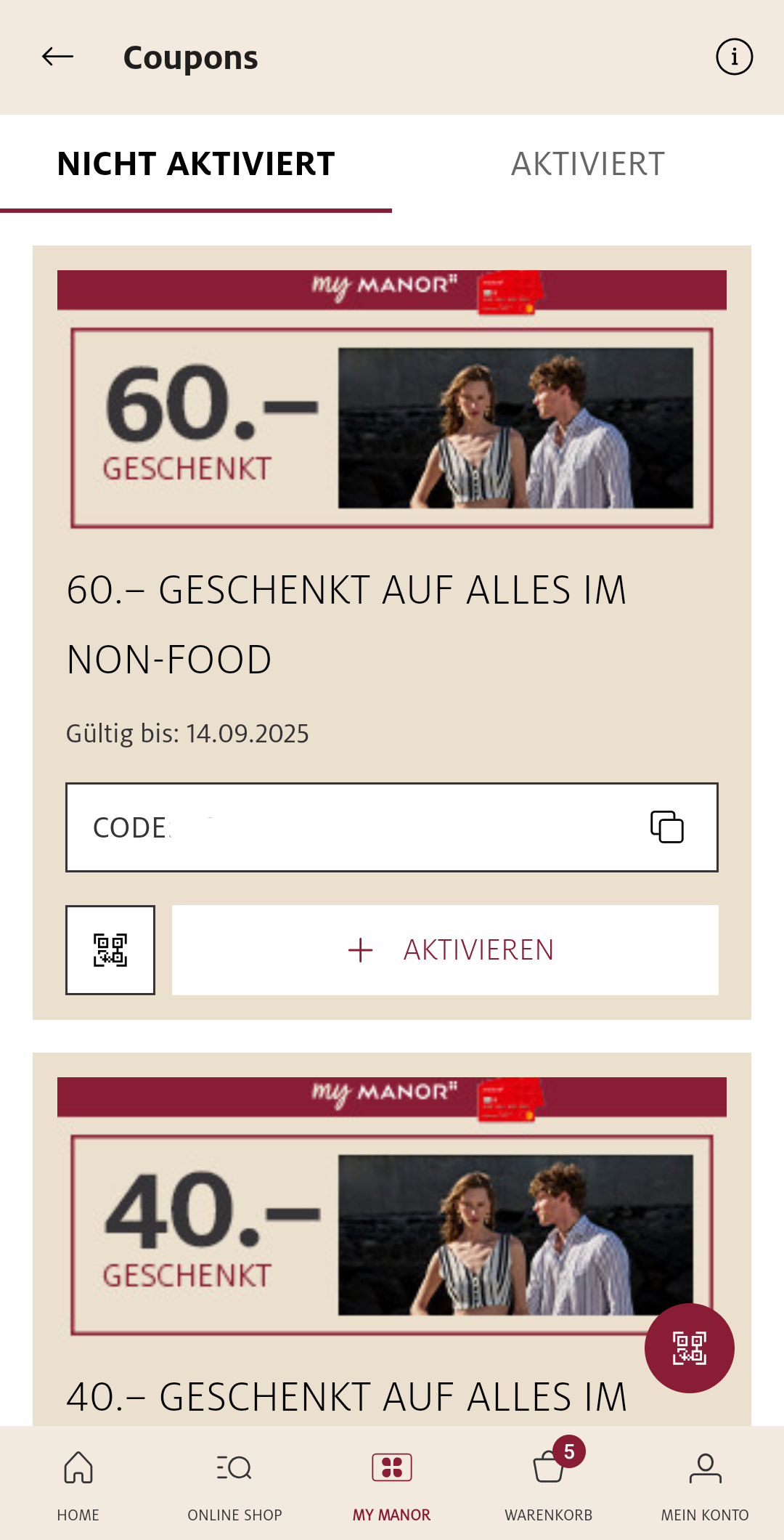 Allgemeiner Tip: Vor dem Einkaufen bei Manor immer kurz in die Manor App schauen, dort sind die Coupons direkt verfügbar und aktivierbar. Dann verpasst man auch nix.