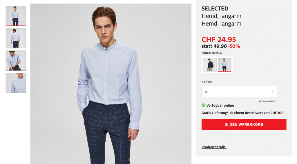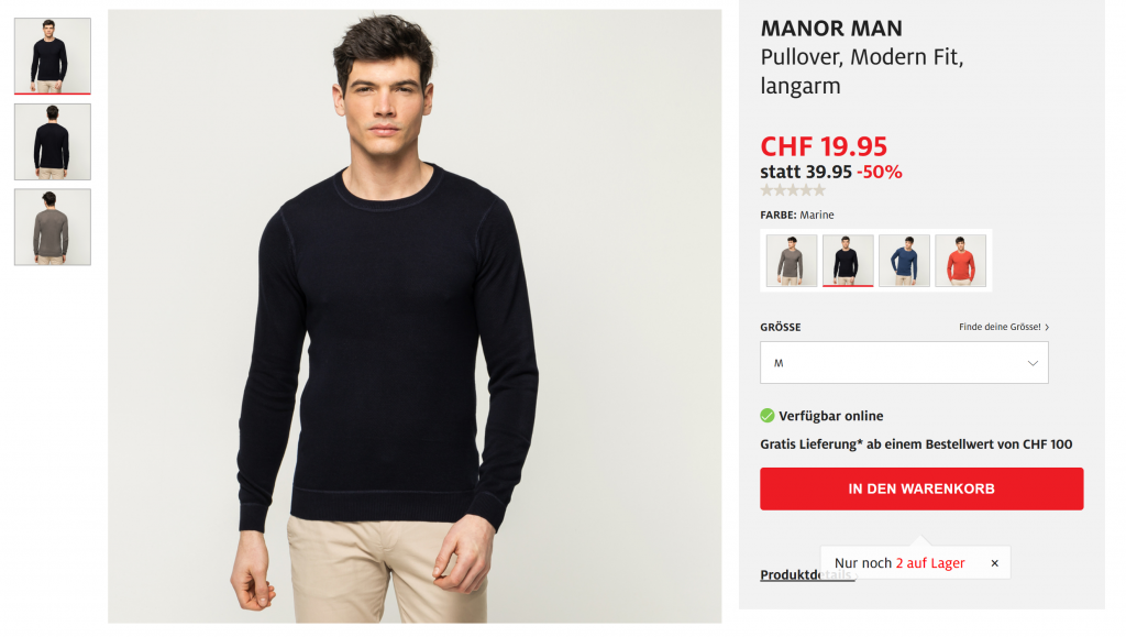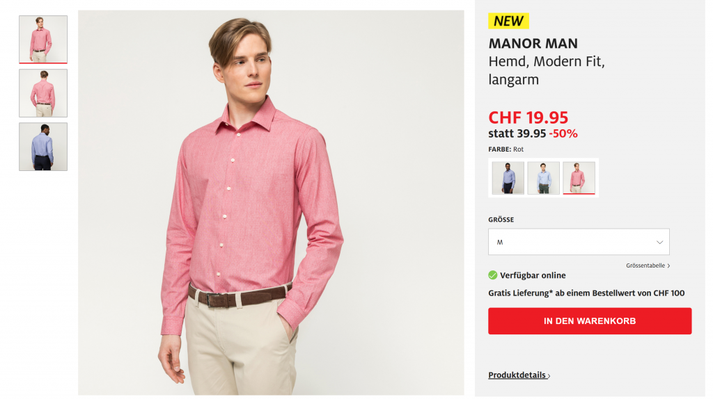 Noch einmal ein Post zum Manor SALE: Auch im Bereich Bekleidung gibt’s einige sehr gute Angebote. Abholung im Manor Warenhaus ist gratis, ansonsten muss man für über CHF 100.- bestellen, dann ist der Versand ebenfalls gratis.