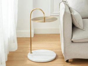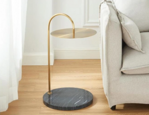Mit seinem Art-déco-Design und den sanften Farben ist dieser Beistelltisch ideal, um Modernität und Glanz in Ihren Raum zu bringen. Er kann zum Beispiel neben Ihrem Sofa stehen.
