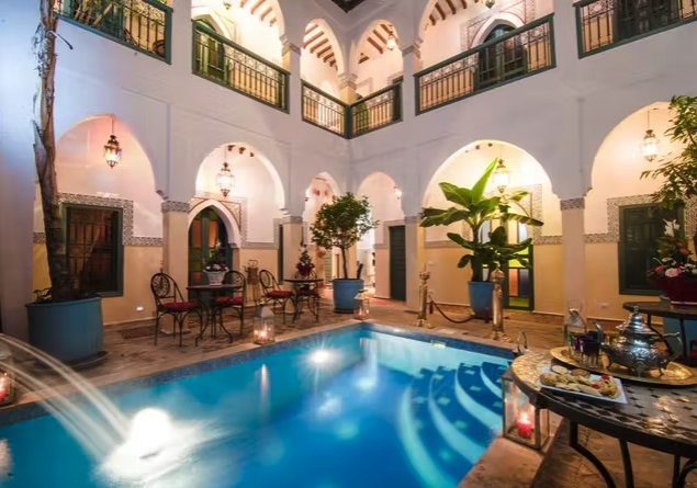 Man übernachtet im 4-Sterne Hotel Riad Caesar an zentraler Lage in Marrakesch für CHF 54.- pro Nacht und Zimmer (max. 2 Personen). Bei anderen Plattformen liegen die Preise bei CHF 79.- pro Nacht.
