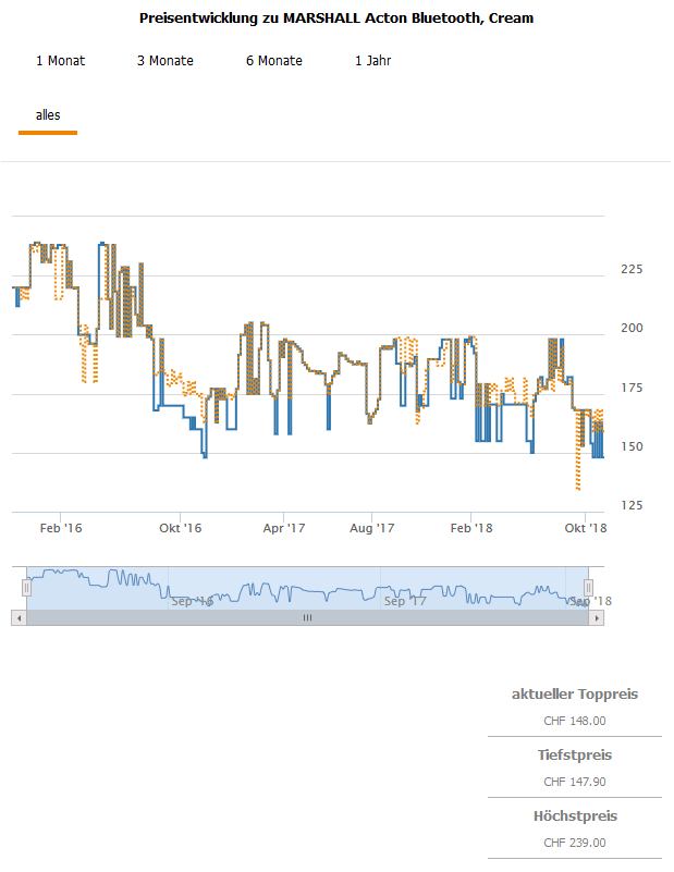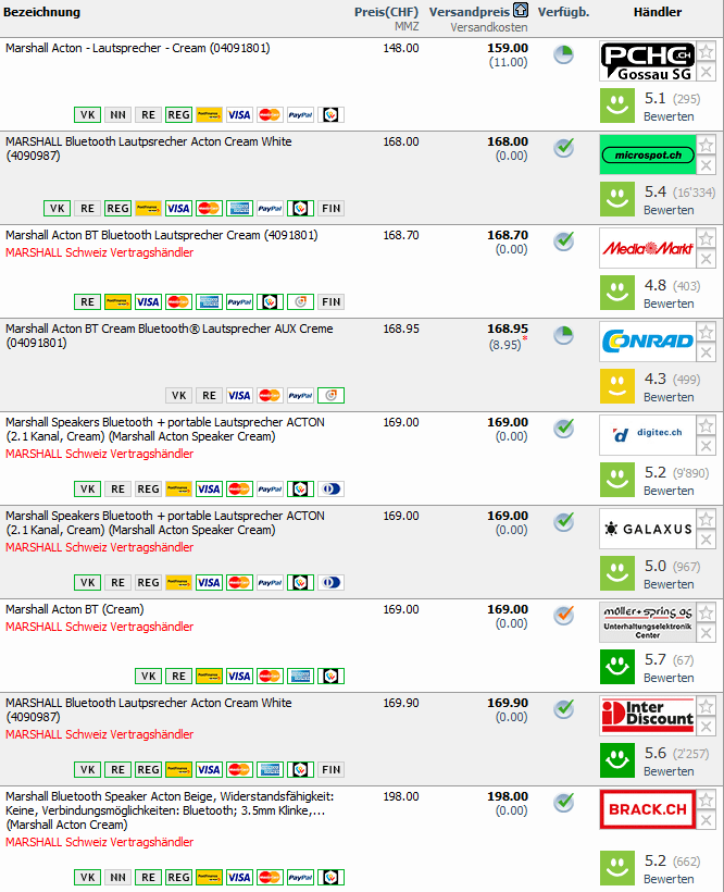 Gemäss toppreise gab es den Lautsprecher über alle Farben bislang nie günstiger als für 134.40 CHF, der zweitbeste Preis liegt aktuell bei 147.- CHF.
