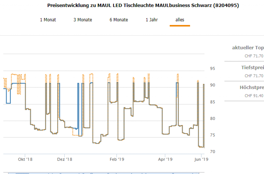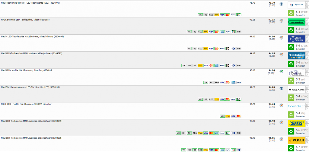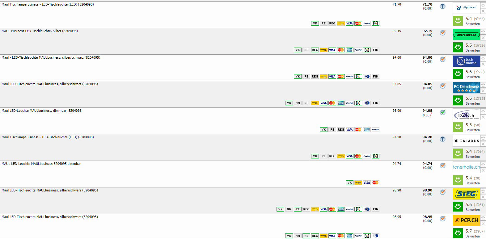 digitec bietet aktuell die Maul Business - LED-Tischleuchte für nur CHF 71.70. Das ist laut toppreise.ch ein neuer Bestpreis für das Gerät, und der beste Vergleichspreis sind aktuell CHF 92.15.