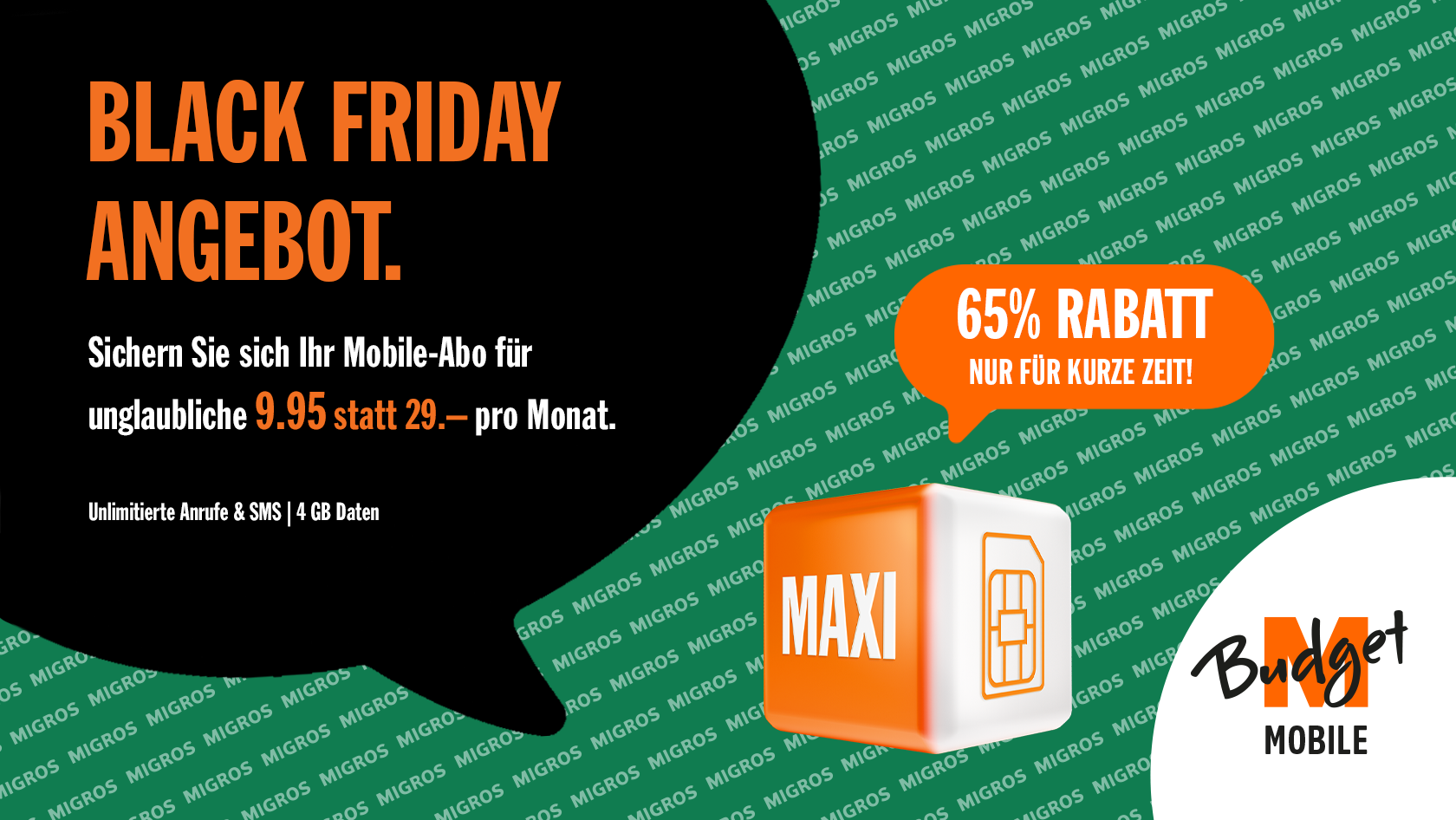 65 % RABATT NUR FÜR KURZE ZEIT! Sichern Sie sich Ihr Mobile-Abo für unglaubliche 9.95 statt 29.–pro Monat.* Unlimitierte Anrufe & SMS | 4 GB Daten