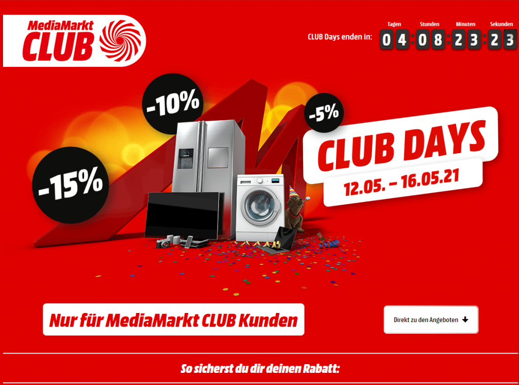 Bei Media Markt gibt es die CLUB Days, gültig nur für Kunden mit einer CLUB Mitgliedschaft, welche man hier gratis abschliessen kann (hat nur Vorteile). Unten folgen die spannendsten Angebote, gesammelt als Sammelbeitrag. Die Angebote gelten bis ende Woche noch.