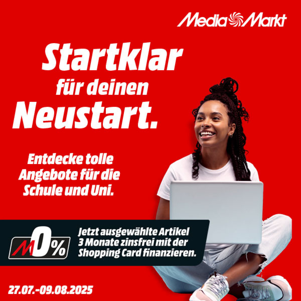 Sichert euch jetzt attraktive Deals auf ausgewählte Notebooks, Tablets, Smartwatches, Smartphones, PCs, Hardware, Software, Zubehör und vieles mehr und finanziert diese ganz einfach mit 0 % Zinsen über 3 Monate mit der MediaMarkt Shopping Card.