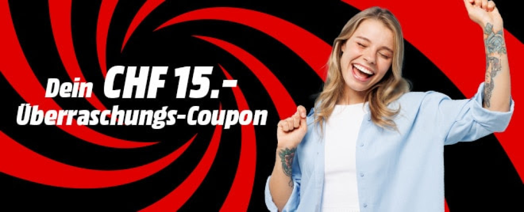 Aktuell haben wohl alle myMediaMarkt Club-Mitglieder einen „Überraschungs-Coupon“ erhalten. Mit diesem könnt ihr euch 15 Franken Rabatt ab einem Bestellwert von 150 Franken sichern! Der Gutschein gilt ab heute 14 Tage lang, also spätestens bis zum 03.02.
