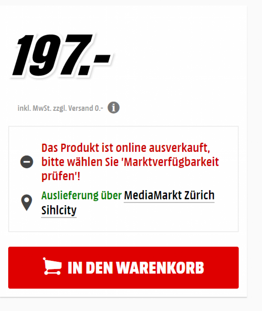 Ich hatte mal Mediamarkt wegen sowas gefragt, da eine günstige Kaffeemaschine nur in einem Kanton sehr weit weg erhältlich war. Ich erhielt nach 3 Wochen eine Antwort: