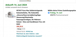 Gerade das Tagesangebot von MediaMarkt gesehen: PETKIT Pura Max – Selbstreinigendes Katzenklo für 539 Franken! Das Geld dürfte es allemal wert sein, wenn man bedenkt, wieviel Aufwand das über mehrere Jahre gerechnet ist, immer das Klo zu putzen. Aktuell sonst foletti etwa gleich teuer, aber da der Shop echt grottige Garantiebedingungen hat (nur Hersteller-Gewährleistung) ziehe ich eher den Vergleich zu iPet, wo das Klo gerade 624 Franken kostet.