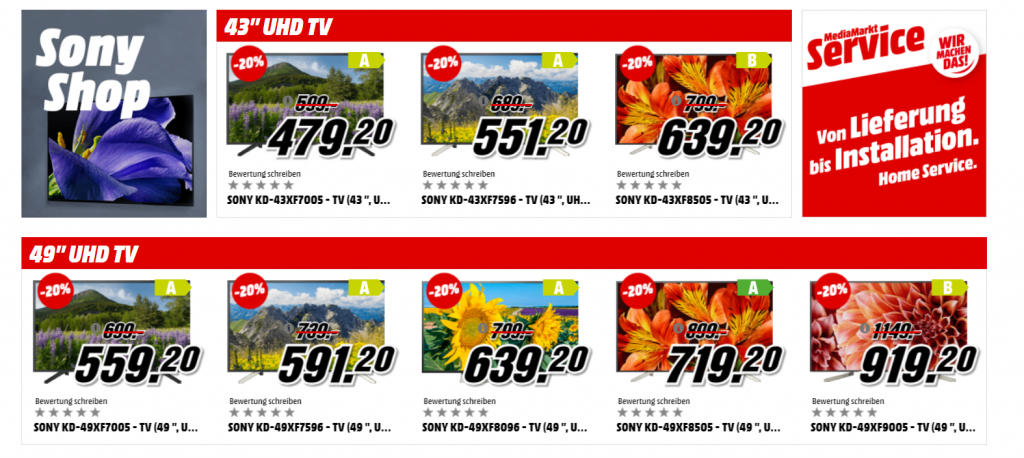 Bei MediaMarkt gibt’s noch bis und mit Samstag 20% Rabatt auf viele Sony TVs. Viele davon gibt’s zum neuen Bestpreis.
