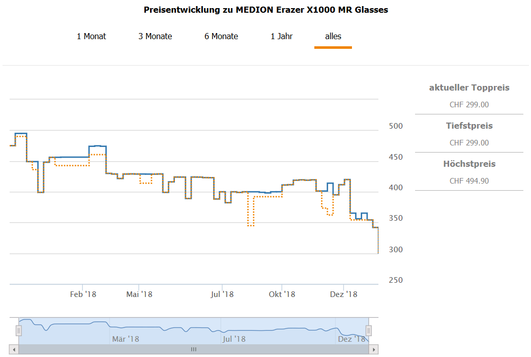 Gemäss toppreise war der bestprice bislang bei 341.90 CHF, was aktuell auch der zweitbeste Preis ist.