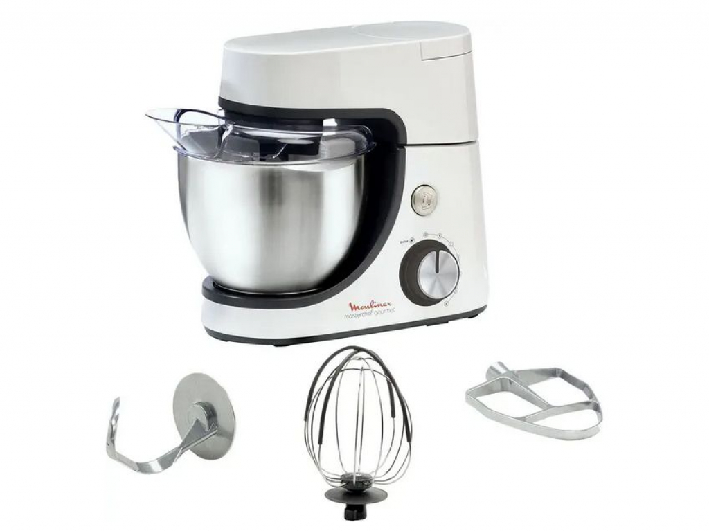- Lieferumfang: 1 x Moulinex Küchenmaschine, 1 x Druckguss-Rührbesen für Gebäckteig, 1 x Druckguss-Knethaken für schweren Teig