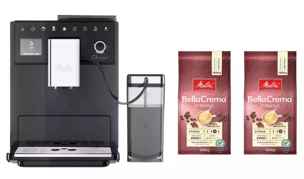 Bei Nettoshop gibt es aktuell erneut einen Wochenhit mit der Melitta CI Touch Kaffeemaschine mit gratis 2x 1kg Melitta Kaffeebohnen. Der Vergleichspreis nur für die Maschine liegt aktuell bei CHF 679.-