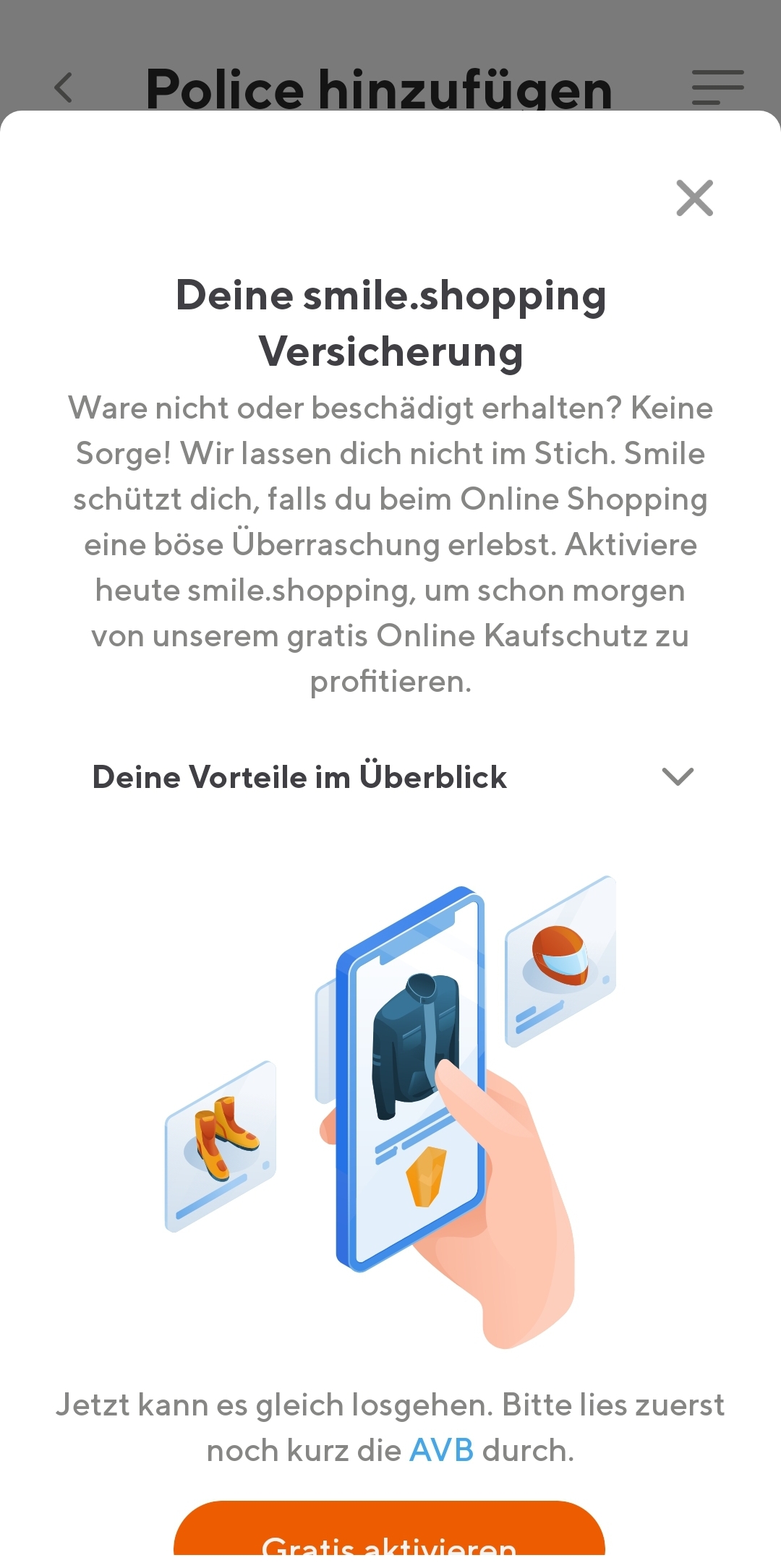 Soeben habe ich die Smile App aktualisiert und las bei den Änderungen, dass es die Smile Shopping Versicherung gratis für 1 Jahr gibt. Habe sie danach sofort aktiviert.