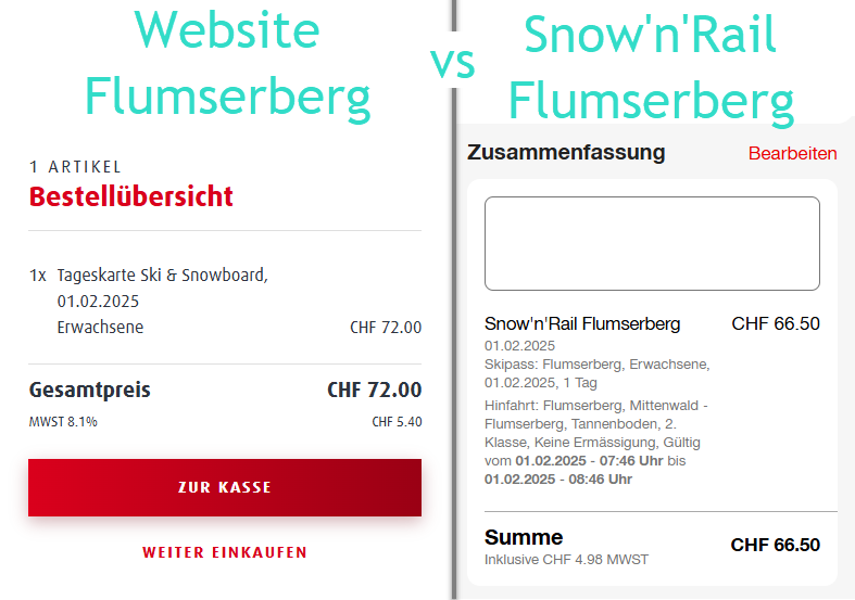 Mit Snow’n’Rail können Tickets für Bergbahnen mit Rabatt gekauft werden. Normalerweise setzt das eine Bahnfahrt voraus. (Logo, sagt ja der Name schon!)