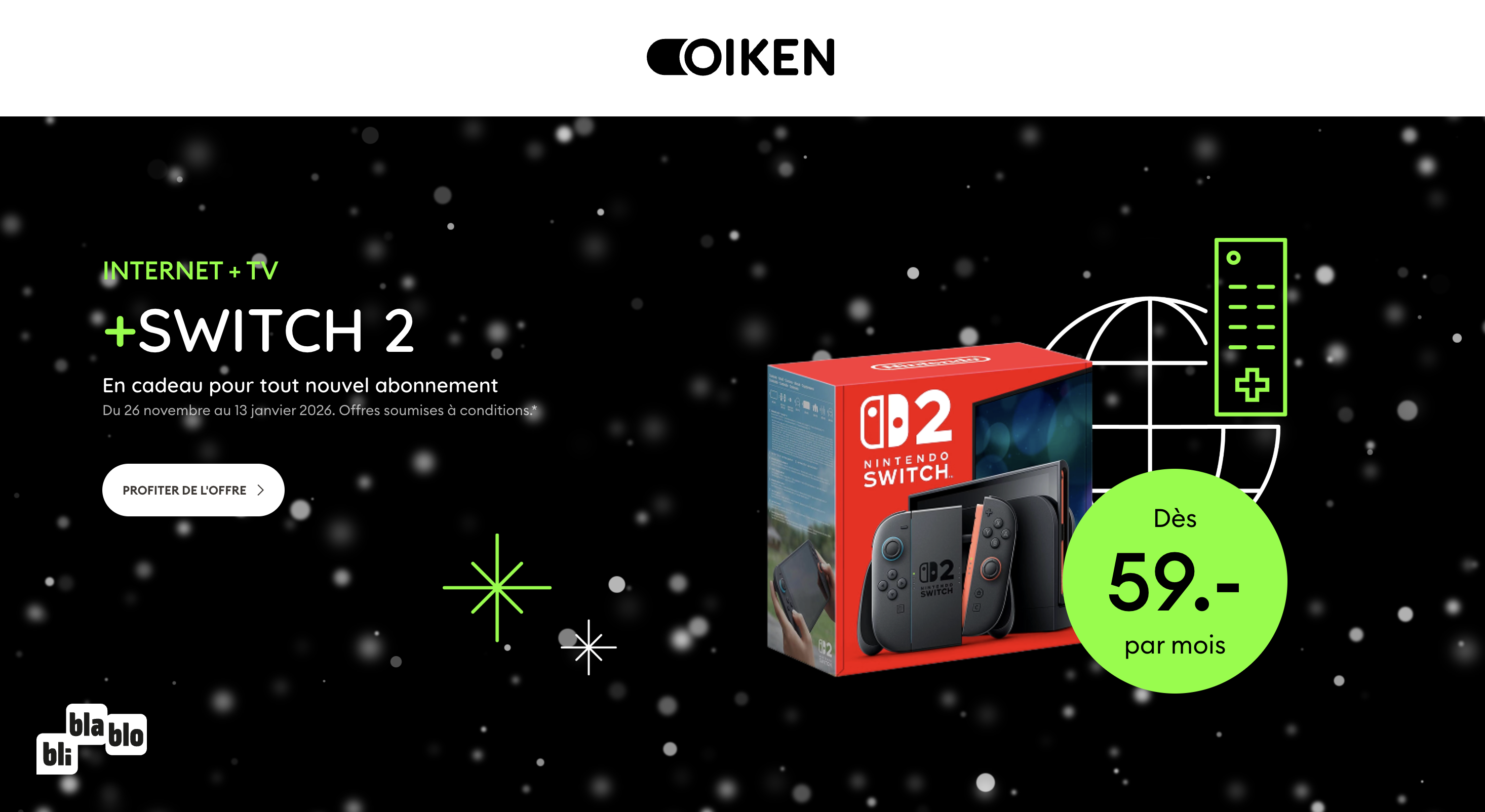 Une Switch 2 en cadeau pour tout nouvel abonnement OIKEN Internet + TV.