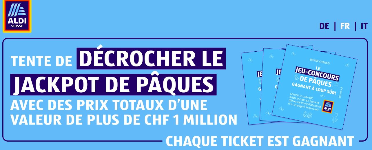 Jusqu’au 31.3.2024, il est possible de participer gratuitement au jeu-concours Jackpot de Pâques organisé par ALDI et de gagner ainsi divers prix immédiats (au moins un bon de réduction de 5 CHF à partir d’un mont […]