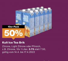 Actuellement chez Migros dans le cadre des offres imbattable de fin de semaine, il y a 50% de réduction sur le Ice Tea culte.