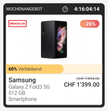 Dans l’application TWINT, le Samsung Galaxy Z Fold3 5G 512 Go noir est disponible dans le cadre des Super Deals TWINT+ avec une réduction de 26 %. Attention : Lorsque vous comparez les prix, assurez-vous qu’il s […]