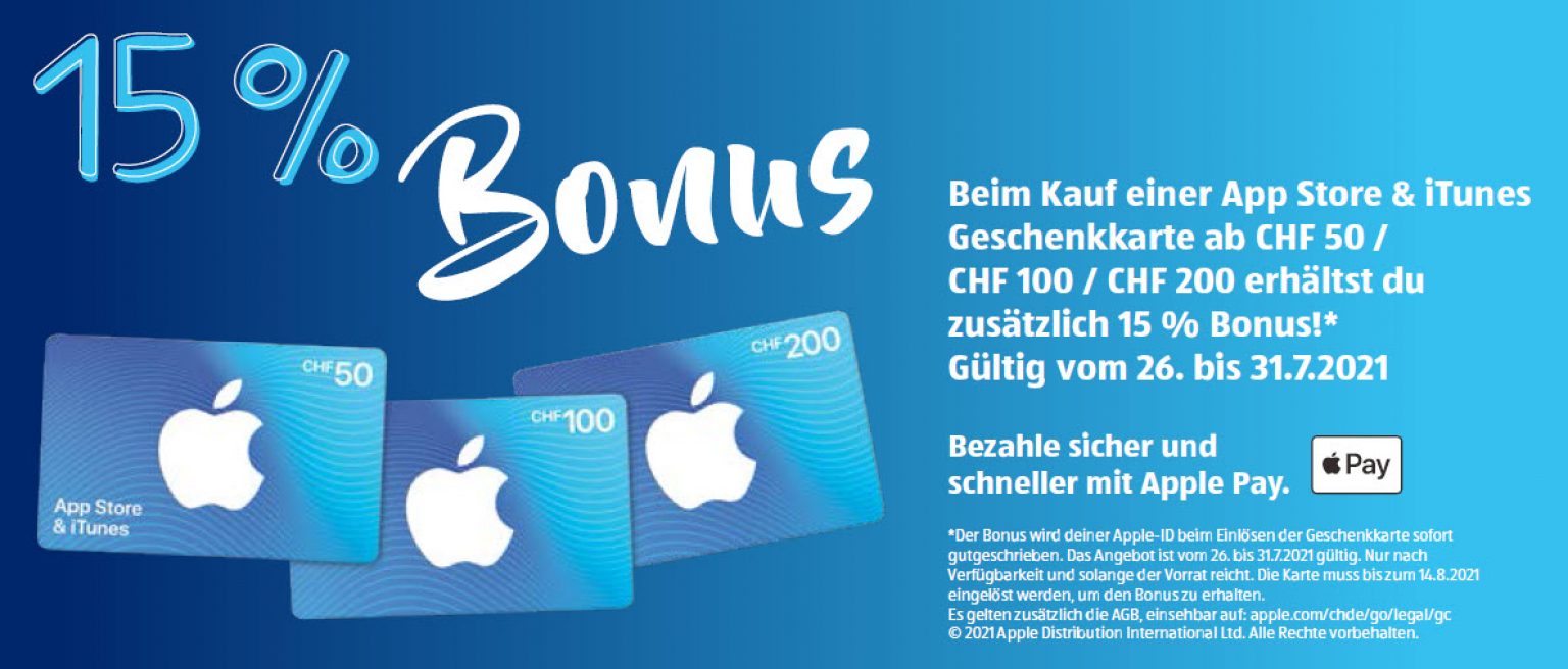 Si vous achetez une carte cadeau App Store & iTunes à partir de 50 CHF / 100 CHF / 200 CHF dans une agence Aldi, vous recevrez un bonus supplémentaire de 15% . Le montant du bonus sera crédité sur votre identi […]