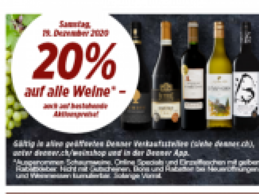Denner offre une réduction de 20% sur tous les vins – même sur ceux qui sont déjà réduits.