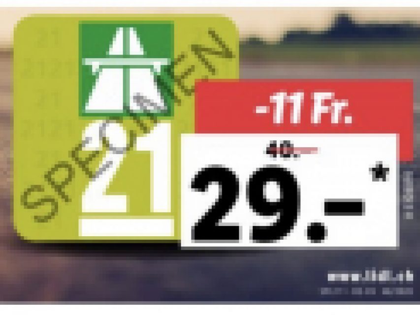 Chez Lidl Suisse : Vignette 2021 pour 29 CHF au lieu de 40 CHF