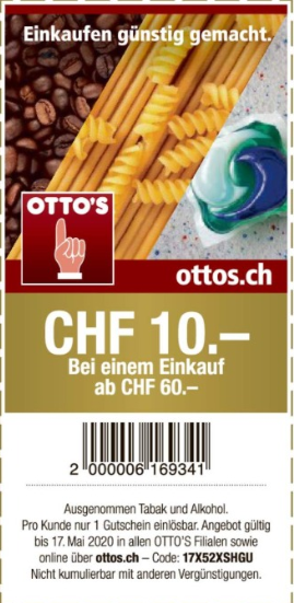 Dans le journal numérique de 20 minutes (et aussi dans le journal papier), il y a encore une fois un nouveau bon d’achat d’Otto. Vous bénéficierez d’un rabais de 10 CHF à partir d’une valeur minimale d’achat […]