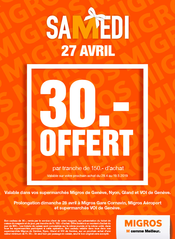 À partir de vendredi prochain qui tombe le 26 avril, 10 % de réduction sur l’ensemble de la gamme dans tous les magasins du groupe Migros Aare (melectronics, Do It & Garden etc.)