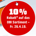 Pour ce vendredi, la chaîne de la grande distribution OBI offre 10 % de réduction sur tout ce qui se trouve dans ses magasins à Schönbühl, Oftringen, Volketswil et Thoune.