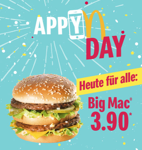 Le 28.3.2019, McDonald’s présentera pour la dernière fois le BigMac sur AppyWeeks pour 3.90 CHF.