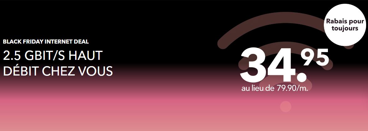 Actuellement, Sunrise propose l’abonnement Internet Up Connect L pour 34,95 francs par mois. L’offre restera en action jusqu’au 30.11.2024 inclus.
