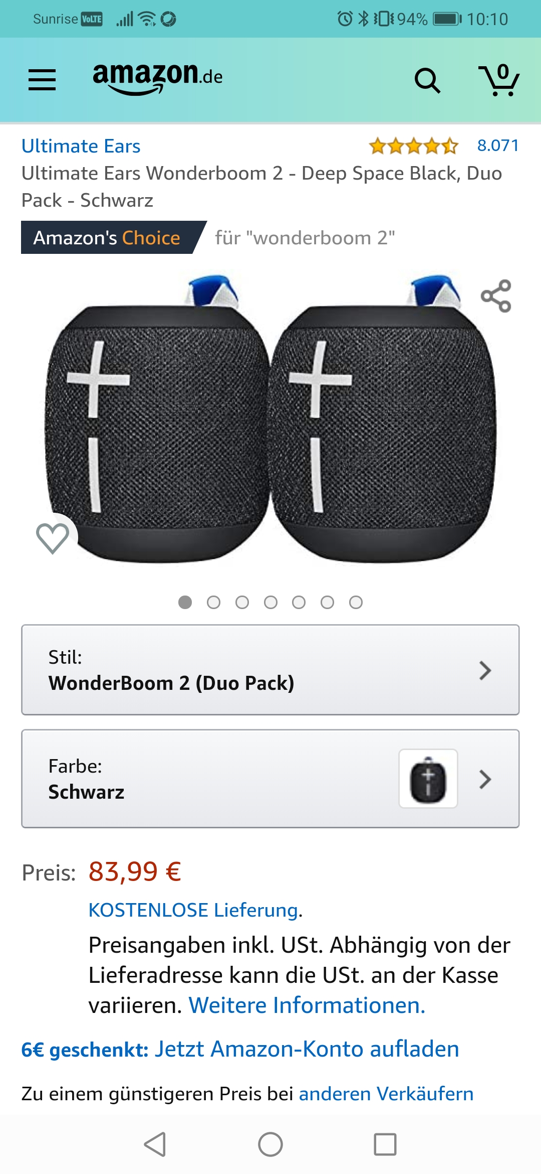 Bei Amazon Deutschland bekommt man aktuell die UE Wonderboom 2 im Doppelpack (NUR in Deep Space Black) für 81,55 CHF inkl. Versand in die Schweiz.