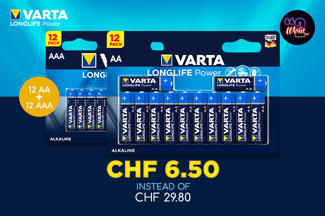 Heute exklusiv für dich: Varta Long Life Power Batterien 12 x AA + 12 x AAA für schlappe CHF 6.50 !!!