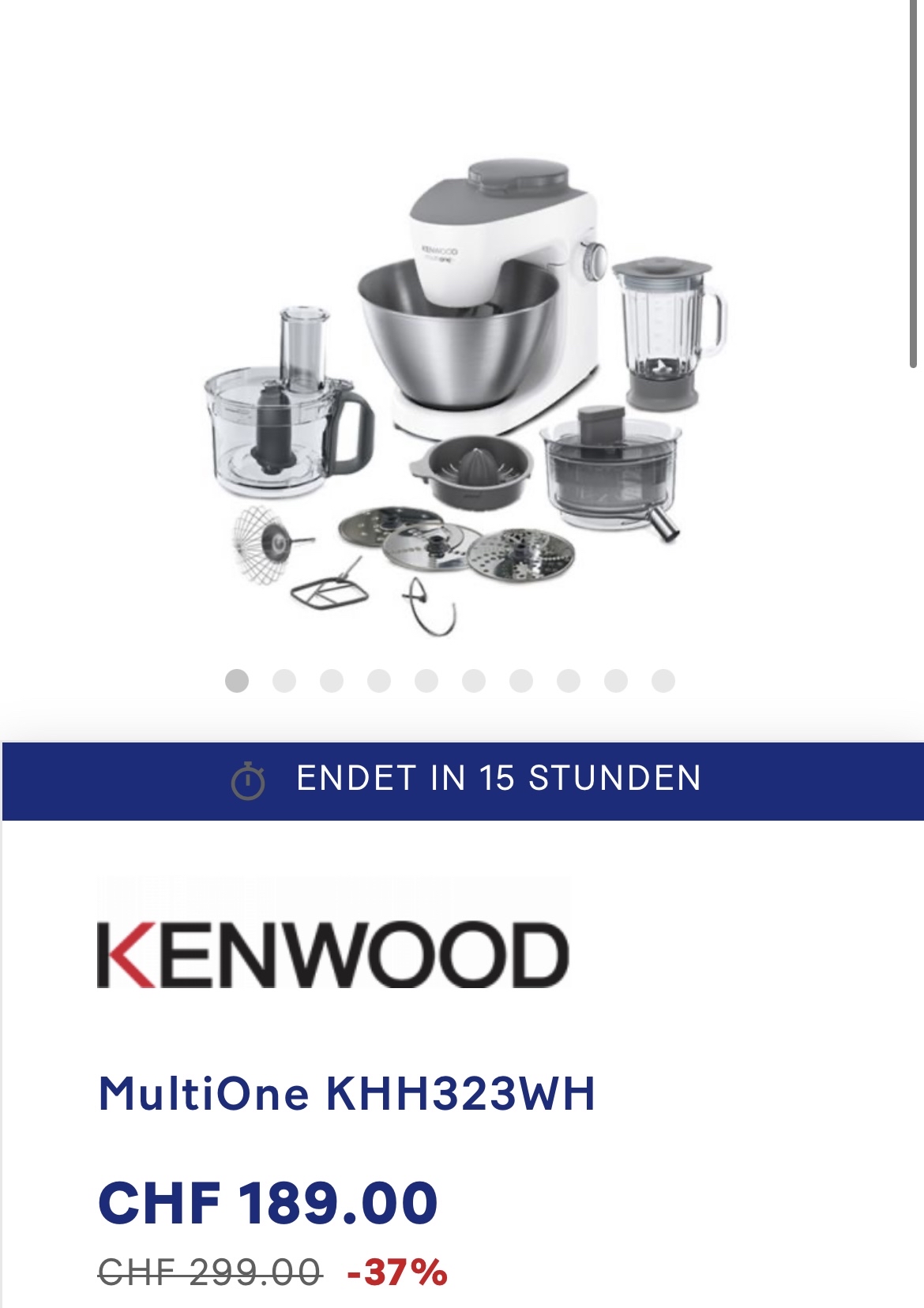 Heute gibt’s im 20 Minuten Deal das Küchenmaschinen-Set von Kenwood.