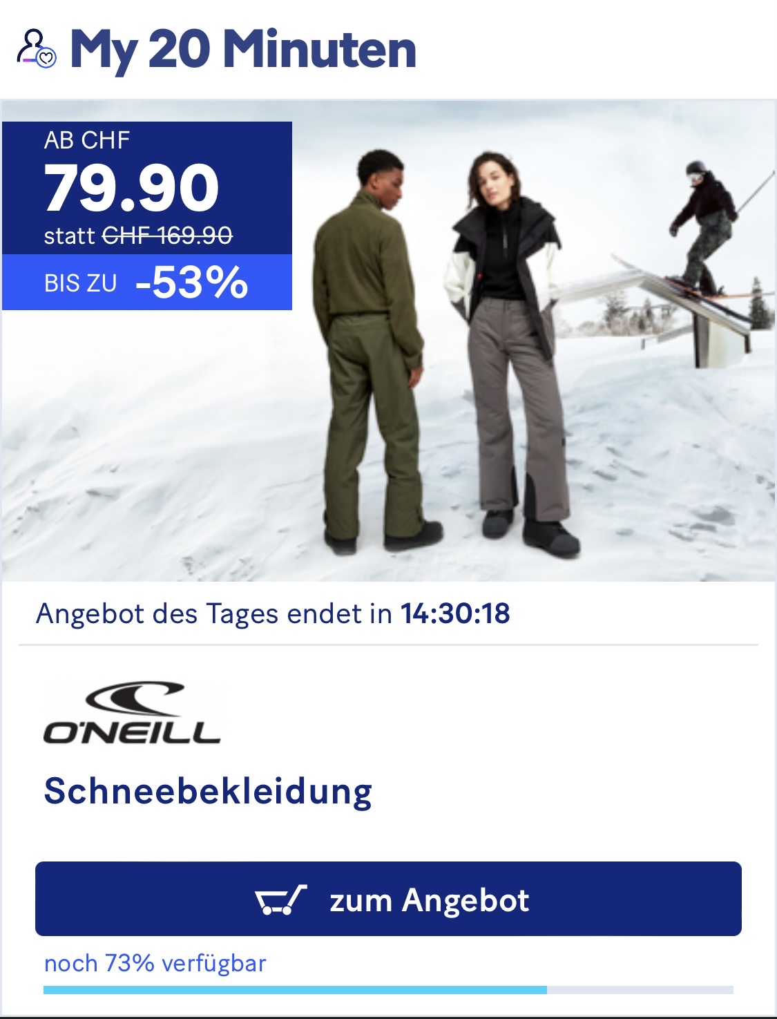 Bei my20min.ch gibt’s derzeit Winterbekleidung von O’Neill vergünstigt.