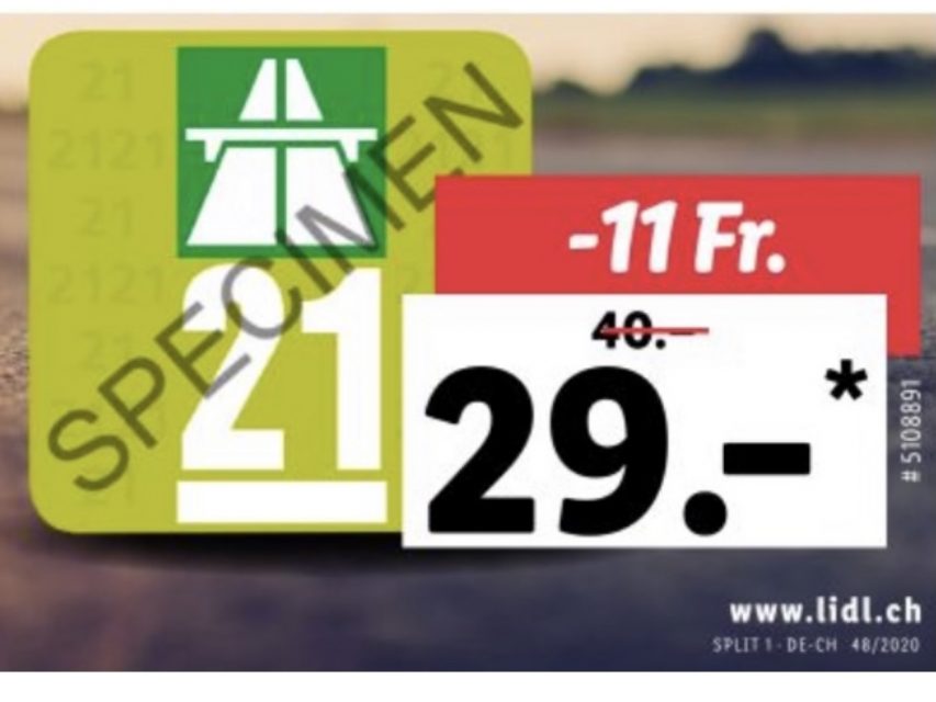 2021 Vignette für CHF 29.- anstatt CHF 40.- bei Lidl Schweiz.
