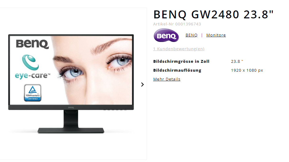 buddy78 hat den neuen Beitrag BENQ GW2480 23.8" bei microspot geschrieben vor 6 Jahren, 4 Monaten