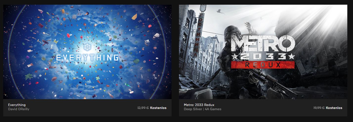 Aktuell bekommt Ihr im Epic Store Everything und Metro: 2033 Redux komplett kostenlos. Das Angebot gilt noch bis 03. Oktober