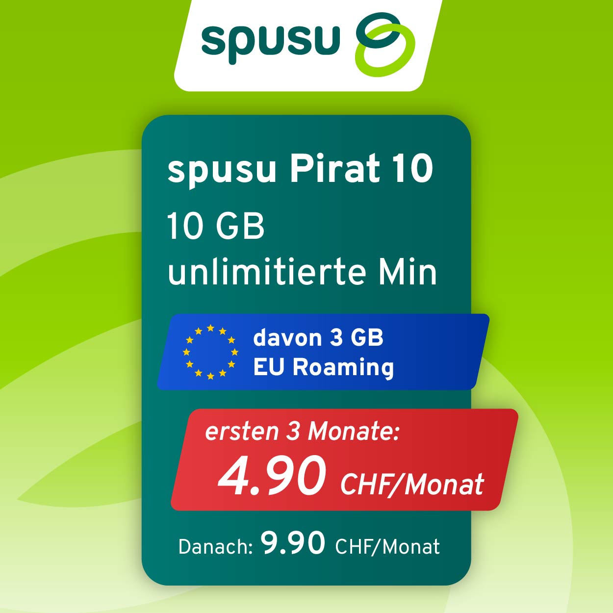 Mit diesem Angebot profitiert ihr von 10GB Datenvolumen, unlimitierten Anrufen und SMS in der Schweiz. Zusätzlich im Abo inbegriffen sind 3 GB Roaming in der EU/UK. Die ersten 3 Monate kostet das Abo nur CHF 4.90 […]