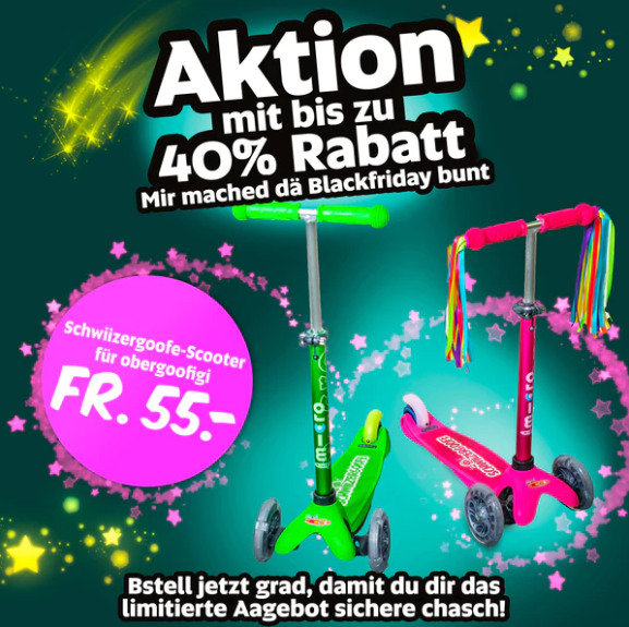 Erfüll auch du dir den Traum vom coolsten Micro-Scooter des ganzen Schwiizergoofe-Universums und hol dir das unglaublich günstige Black Friday Angebot ab sofort - solange Vorr […]